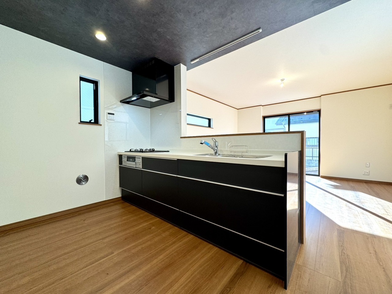 ご家族を近くに感じられる対面式キッチンを採用。使い勝手の良いシステムキッチンです。