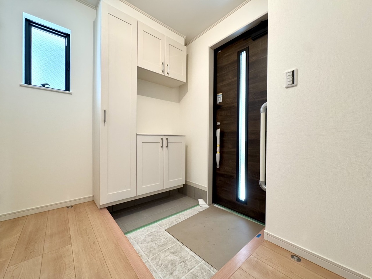 ~同仕様です♪~ 当社施工例の完成現場ご見学可能です。お気軽にお問い合わせください。 窓から光が差し込む明るくて広々とした玄関ホール。ご家族で並んでもストレスなくお出掛けできます。