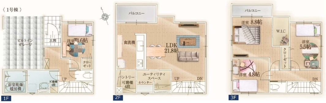 - ※完成予想図はいずれも外構、植栽、外観等実際のものとは多少異なることがあります。