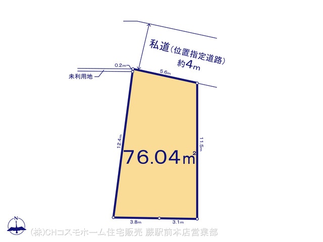 | 土地面積 | 76.04m² 実測 (私道209m²別に有、私道持分比率:3/12) | ||