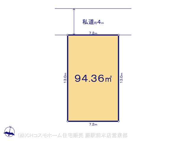 | 土地面積 | 94.36m² 実測 (私道153m²別に有、私道持分比率:2/20) | ||